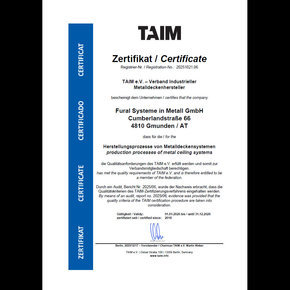 Certificate TAIM - Metalit